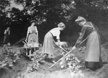 - TitleLadies from Agricultural College hoeing at Arlesey House. World War I.
