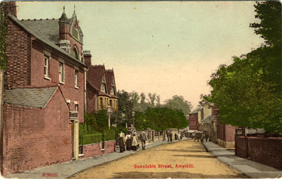 - TitleView of Dunstable Street. Sent to Mrs. Setchell 6 River St. Bedford, from A.A. Published by O.F.Stengael and Co. Ltd. London N. Printed in Saxony - E38227. This card has a matt finish.