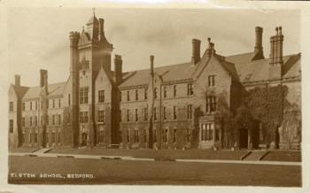 - TitleCard showing Elstow School, Bedford. Sent to Miss Stella Koch, 12 Clifton Terrace, Cliftonville, Margate from Winnie. Bedford postmark. Publisher unknown.