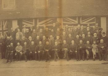 - Scope and ContentLeft to right: Top row: Arthur Macnamara, Barnard Dimmock, James Francis Hatfield Harter, Thomas Fardon, George Haynes, William Hugh Jackson, Edward Ernest Dymond, William Philip Beckett, John Cumberland, Henry Chernock, Gibbs Brandreth, William Henry Derbyshire, George Horn, Charles James Pope. 3rd row: Thomas Jobson Jackson, George mercer Johnson, John Pedley, Benjamin Cole, George Cole, George Cook, John Dover, James Daniels, James Noel Norman Shillito, Henry Pettit, John William Green, John Henry Limbrey, Henry Trethewy and James Crouch. 2nd row: Richard Purser, Theed William Pearse (Clerk of the Peace), John Hutchison Fiennes Peppercorn, Jesse Wilson, William Inksip, John King, Charles mees, Robert Mossman, Jabez Carter, Thomas Smart, Robert Henry Lindsell, Beauchamp Moubray Lord St John, Joshua Hawkins, Edward Thurlow Leeds Smith, Asher Hucklesby, Edward Crouch, John Brown and Thomas Barnard (treasurer). Front row: Charles Samuel Lindsell, Richard Orlebar, Henry Hilton Green, Richard Barton, Marquess of Tavistock, Charles Howard, Charles Magniac, Samuel Whitbread MP, Frederick Howard, Henry Blundell, John Irving Wright, Cecil Delves Broughton and Alexander Pym.