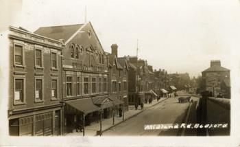 - Title'Midland Rd, Bedford'. Taken from the railway bridge, the view looks east. The The County Theatre can be see on the left and on the right, in the distance, is The Granville Temperance Hotel. No indication of publisher.