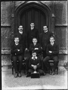- TitleUnidentified group top left - Captain F L Jarratt (master); top right Revd P G Langdon (master). Possibly a swimming team, or a Fives IV with reserve player