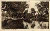 Title: Postcard titled "RIVERSIDE WALK,BIGGLESWADE" showing some boats moored up on a tree lined river Ivel...