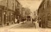 Title: Shortmead St. Warren & Co butchers and game dealers left, churchyard gates right.